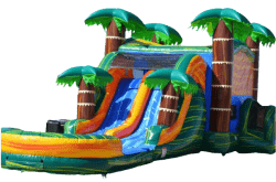 The Cali Palms Dual Lane Combo (Wet or Dry) is one of our biggest and most exciting units. Featuring a spacious bounce area, climbing wall, and dual racing slides with a splash landing, this combo delivers nonstop fun and high-energy excitement.